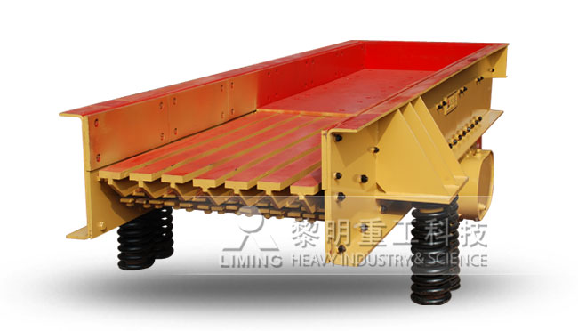 振動給料機又稱振動喂料機,是黎明重工為均勻輸送大塊物料而設計的新型振動給料機,它采用雙偏心軸激振器的結(jié)構特點,保證設備能承受大塊物料下落的沖擊,大大提高了其給料能力。在生產(chǎn)流程中可把塊狀、顆粒狀物料從貯料倉中均勻、定時、連續(xù)地送入受料裝置,在砂石生產(chǎn)線中可為破碎機械連續(xù)均勻地喂料,并對物料進行粗篩分,從而防止受料裝置因進料不均而產(chǎn)生死機的現(xiàn)象,延長了設備使用壽命。目前,GZD系列振動給料機已廣泛應用于冶金、煤礦、選礦、建材、化工、磨料等行業(yè)的破碎、篩分聯(lián)合設備中。