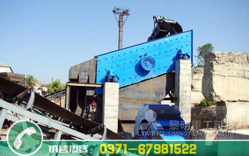 給料設(shè)備——振動給料機:均勻、等量的將需要加工的砂石料送到一階段破碎機設(shè)備的進(jìn)料口。